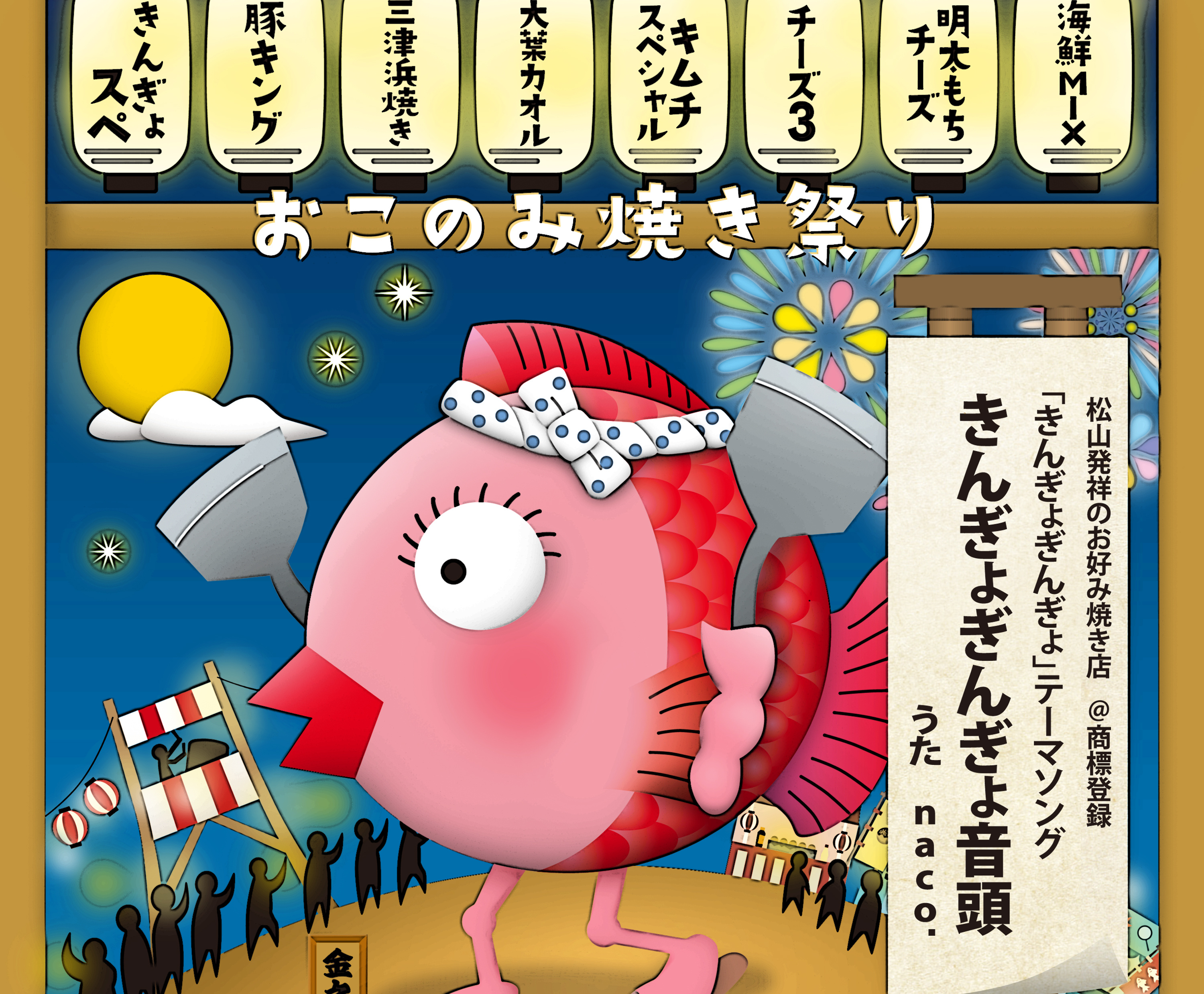 naco.松山発祥のお好み焼き店「きんぎょぎんぎょ」テーマソング *商標登録2021/8/11リリース「きんぎょぎんぎょテーマソング きんぎょぎんぎょ音頭」 naco.とのコラボレーションが実現! |